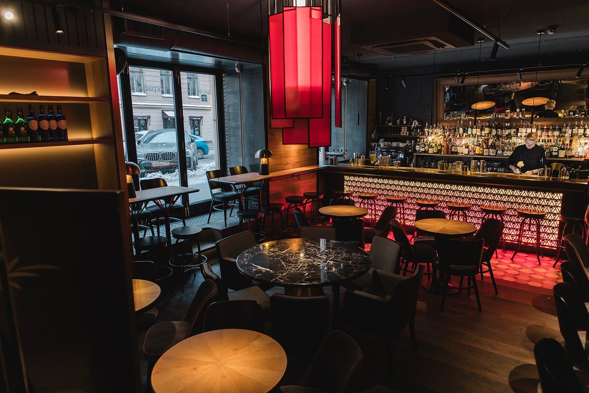 Вкусная и разнообразная кухня, рестораторы постарались. Необычные коктейли и большой выбор вин. Очень красивые девочки администраторы. Но, блин, тесно. Иногда сидишь и чувствуешь локти двух соседей.